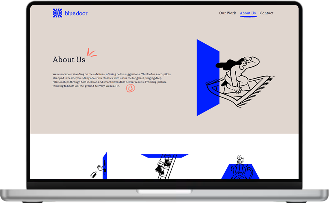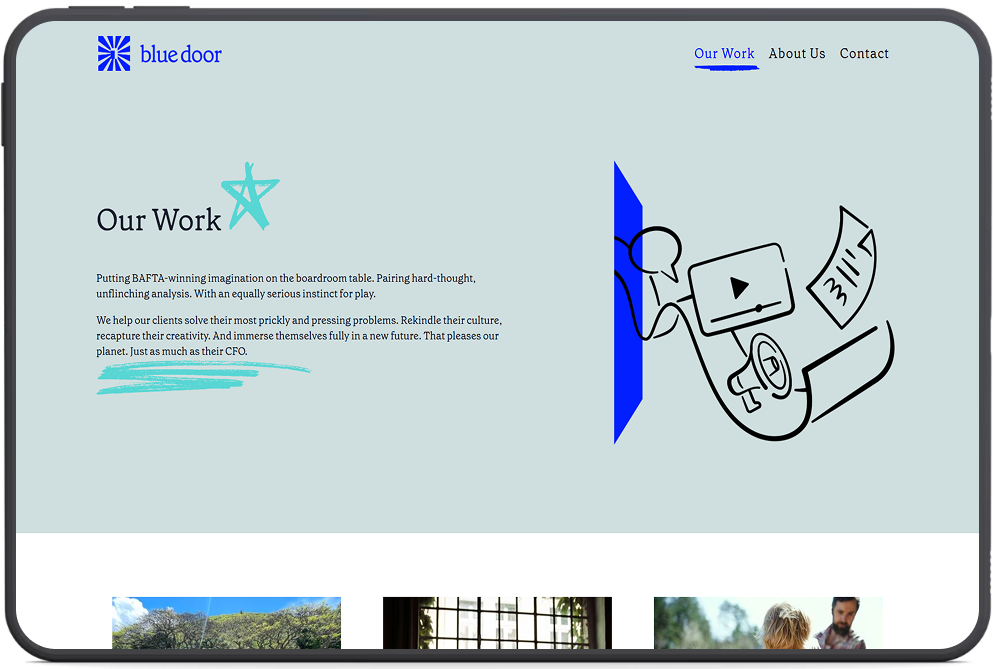 To complement Blue Door’s brand overhaul with a crisp and cohesive B2B website that provokes, engages and wows potential clients.
