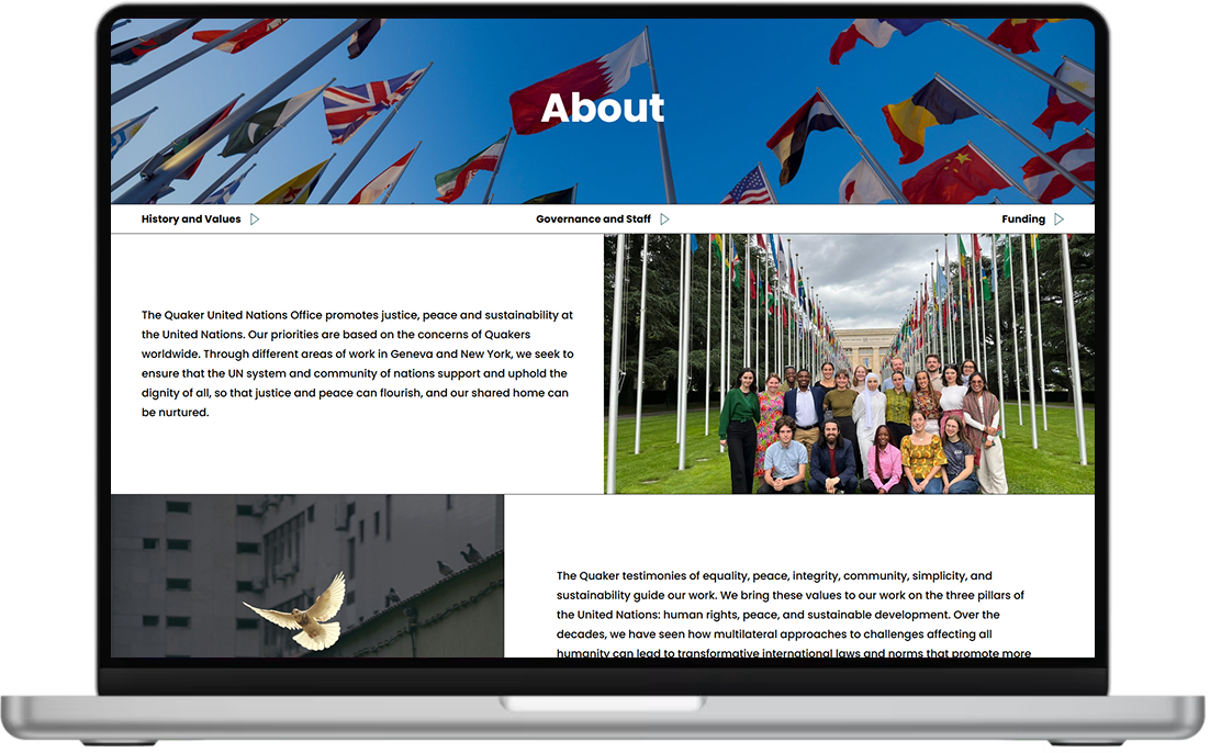 To leverage our website redesign services to amplify QUNO’s voice within the international community, celebrate its rich legacy, and help build informed coalitions for peace and justice.